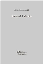Leer Simas del aliento (Olifante) y escuchar el cd que acompaña al poemario de Celia Carrasco Gil (Tudela, 2000) ha sido regresar al claustro, con aquellos cantos/rezos semitonados y volver al quietismo de Miguel de Molinos, a la poesía del silencio, a Edmod Jabès y su Un extranjero con, bajo el brazo, un libro de pequeño formato (Galaxia Gutemberg/Circulo de Lectores, 2002), libro que fue <<mandato testamentario>> de Valente. Y es que <<Arde el verbo en la liturgia de la noche>>. Leer a Celia Carrasco en este libro y en esta sublime primera parte, Gruta del ser, es saber cómo nos tenemos que acercar a la Poesía: <<En tu ansia de lluvia,/ te acercas hasta el borde/ de su labio agrietado/ y tientas el fulgor del precipicio>>. Con temor y temblor, la escucho y la leo. Estos versos son toda una revelación, esa epifanía perseguida que anhelamos: <<Resuena la verdad y permanece>>.